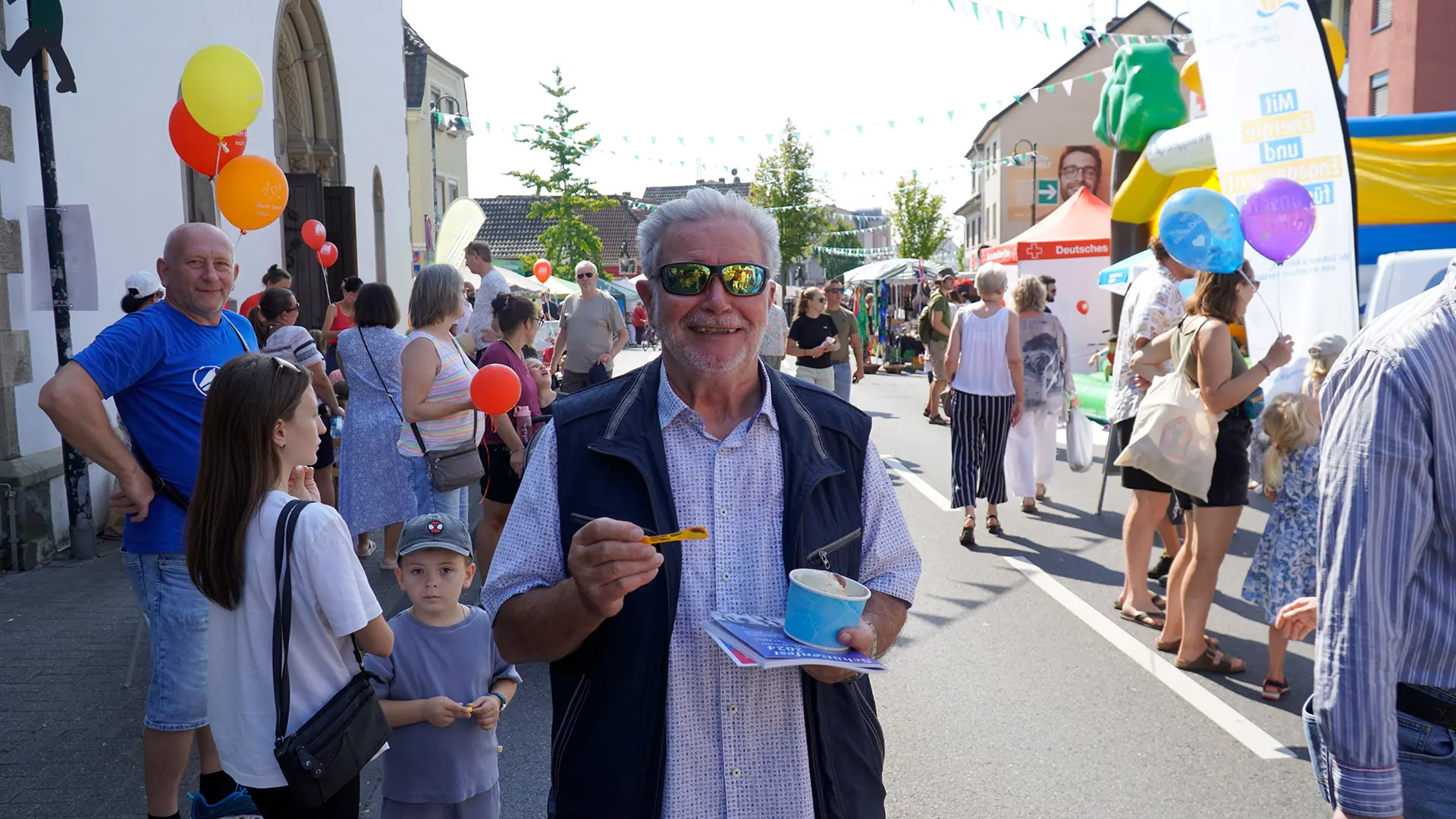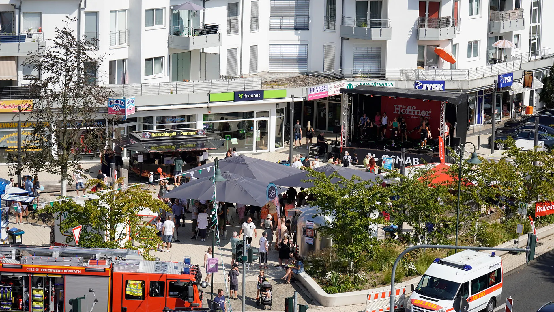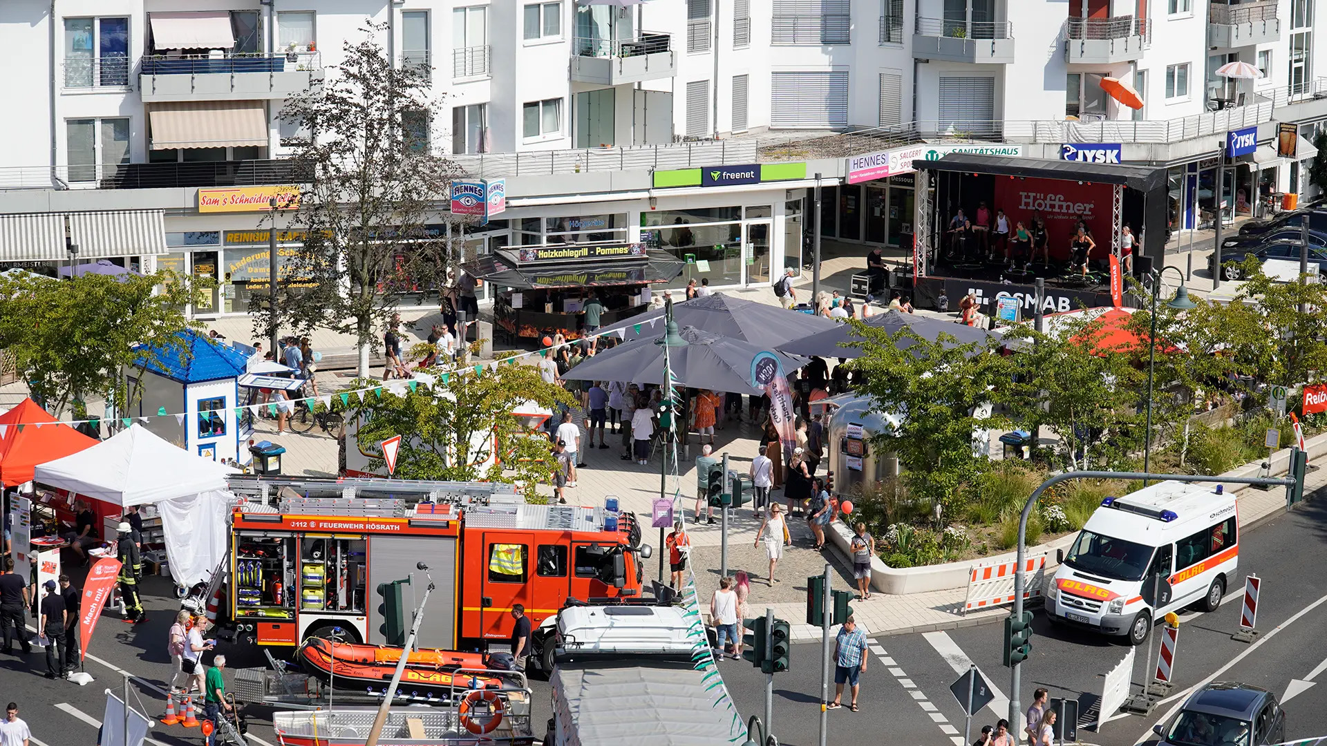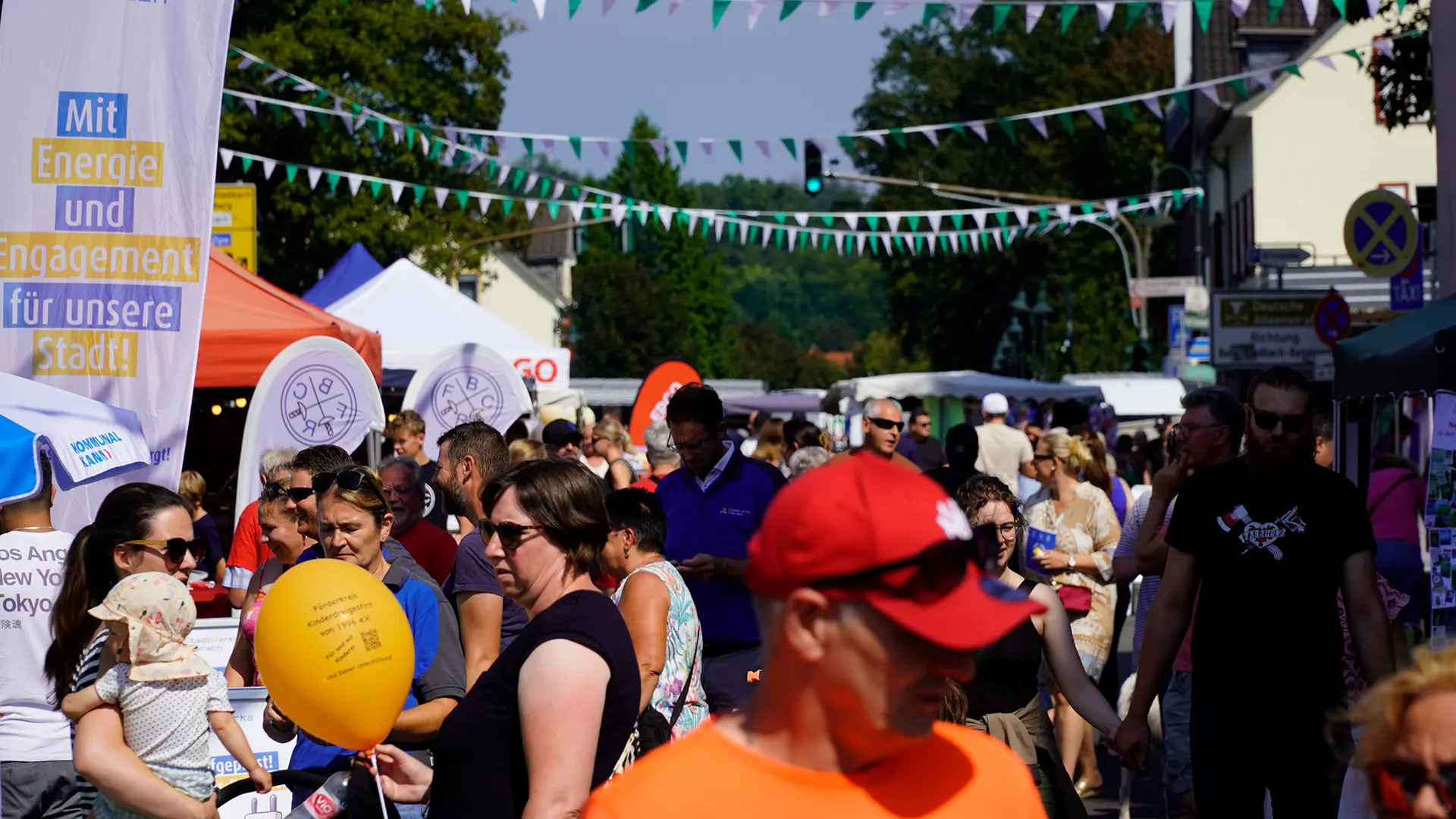 Die Interessengemeinschaft „Gemeinsam für Rösrath“ (GfR) hatte einmal mehr das beliebte Stadtfest unter dem Motto „Rösrath feiert“ organisiert. Zahlreiche Stände von Vereinen, Unternehmen und lokalen Organisationen sorgten für ein buntes Angebot entlang der Hauptstraße, die zwischen Bensberger Straße und Sülztalplatz für den Verkehr gesperrt war. Von kulinarischen Genüssen wie Bratwurst, Crêpes und Reibekuchen bis hin zu handgemachten Produkten war für jeden etwas dabei. Besonders Familien konnten sich über ein umfangreiches Angebot freuen. Der Kinderflohmarkt in der Scharrenbroicher Straße und die zahlreichen Attraktionen begeisterten Besucher.